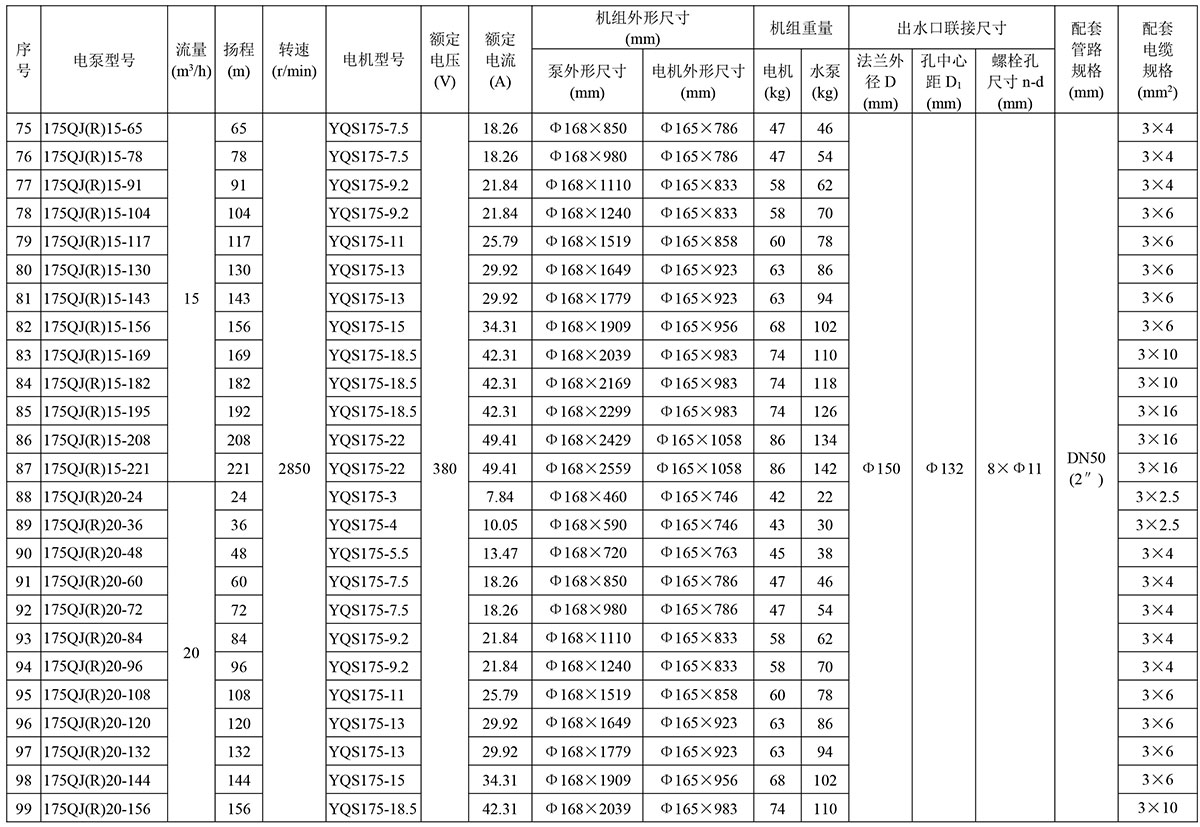 QJ(R) 型号特征:井用潜水电泵(热水)